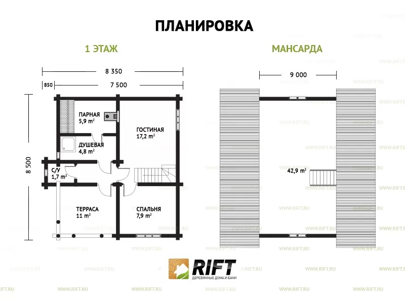 Наружная обшивка — вагонка, весь отделочный материал камерной сушки 10-12%.