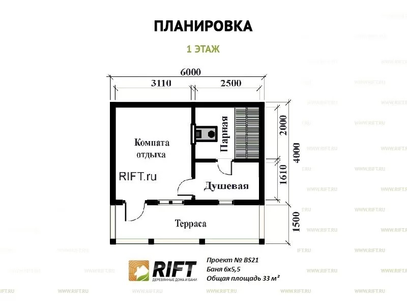 Профилированный брус придает бане BS21 строгую геометрию, исключая зазоры между венцами и делая конструкцию более теплой и устойчивой. Такая баня быстро прогревается, прекрасно удерживает температуру и долго сохраняет тепло, что особенно важно в зимний период. В проекте предусмотрено все необходимое: парилка, душ и комната отдыха. Минимальная усадка, отсутствие необходимости во внутренней отделке и эстетичный внешний вид делают BS21 отличным выбором для дачного или загородного участка. Это баня, которая сочетает в себе комфорт, стиль и надежность.