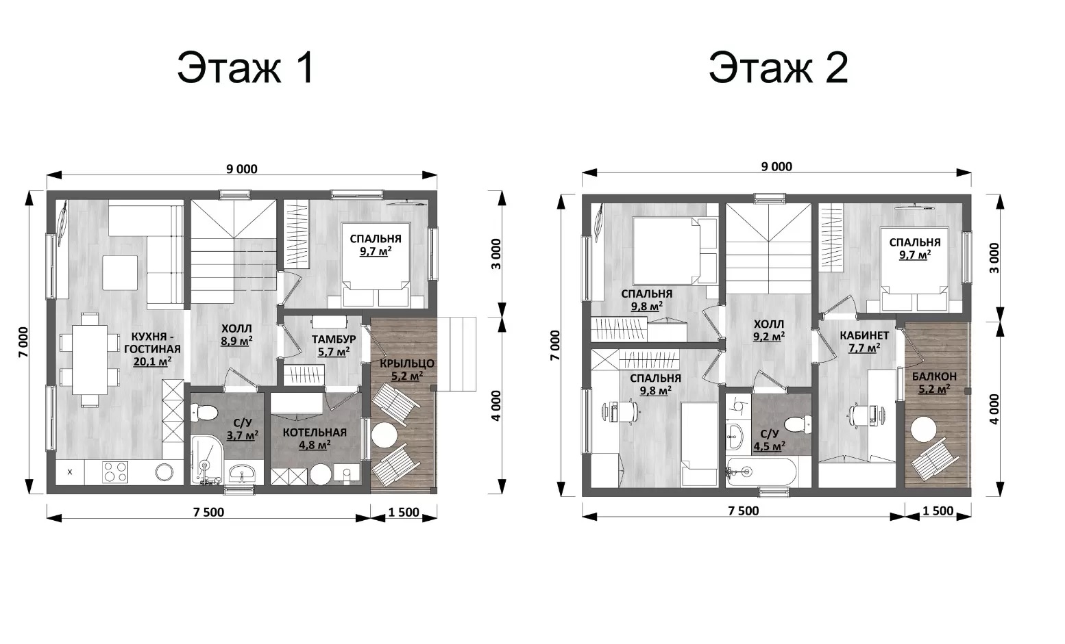 Дом из бруса XL18 площадью 126 м² (9×7 м) — это комфортное жилье для постоянного проживания. Натуральный брус сохраняет тепло и обеспечивает уютный микроклимат в любое время года. В проекте предусмотрены просторная гостиная, несколько спален и хозяйственные помещения. Доступна установка свайно-винтового фундамента, утепление стен и крыши, а также подключение инженерных сетей.