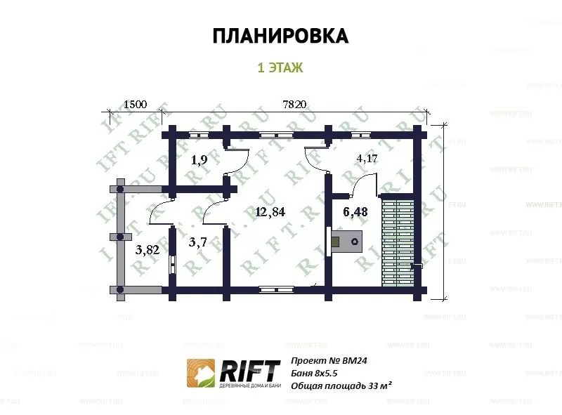 Силовой каркас первого этажа и фронтоны выполняются из качественной доски 150х40 мм.