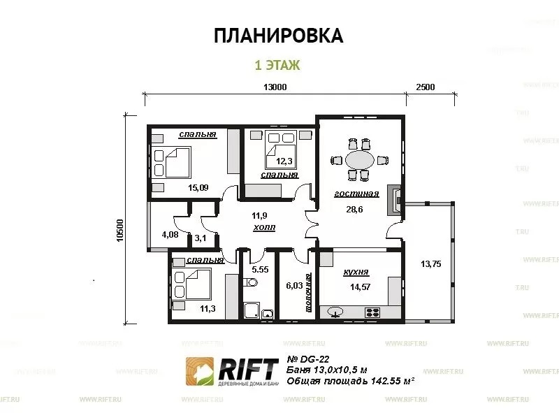 Проект DG22 — просторный каркасный дом общей площадью 142 м2 , подходящий для круглогодичного проживания большой семьи. Дом легко адаптировать под различные потребности: здесь можно организовать несколько спален, просторную кухню-гостиную и дополнительные помещения. Благодаря каркасной технологии строительство займет минимальные сроки, а теплоизоляция будет на высоте.