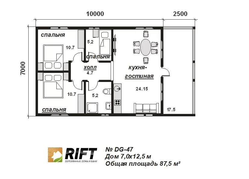 Наша компания Dom Rift создала просторный дом. Здесь вы найдете уют и комфорт благодаря хорошо продуманной планировке, где каждое помещение занимает свое место. Каркасный дом DG47 представляет собой современный и функциональный жилой комплекс, разработанный нашими опытными архитекторами с учетом передовых технологий и требований строительных стандартов. Этот проект идеально подойдет для тех, кто ценит комфорт и стиль в своем жилище. Характеристики: 1. Площадь: 88 кв. м. 2. Этажность: 1 этаж. 3. Размеры: 12×8. Мы никогда не стараемся сэкономить на материалах при строительстве и всегда используем нужное количество, указанное в проекте. Это гарантирует надежность и безопасность наших построек. Используем современные и высококачественные материалы, гарантирующие надежность и долговечность постройки. Мы используем: [Материал] Применяем Каркас, обеспечивая высокую энергоэффективность и экологическую безопасность. Этот одноэтажный дом идеально подходит для постоянного проживания четырех человек. Его необычная форма и архитектурный стиль позволят ему выделяться среди других домов в округе. Цена и условия:  Цена: 2640000 (возможен индивидуальный расчет).  Цена в кредит: Мы предоставляем гибкую систему кредитования, начиная всего с 42 240.  Срок реализации: Проект будет реализован в течение 30 дней дней. Приобретая проект Дом Рифт – Каркасный дом DG47, вы получаете не только стильное и современное жилье, но также поддержку на всех этапах строительства и возможность заказа строительства вашего дома в нашей компании с бесплатным предоставлением проекта. В каталоге проект размещен под артикулом dg47.