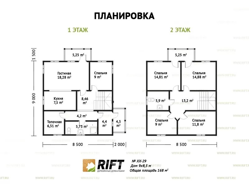 Каркасный дом XX29 площадью 168 м2 (9 х 8,5 м) — современное и просторное решение для комфортного проживания. Благодаря каркасной технологии, строительство осуществляется быстро и экономично. Планировка включает несколько спален, просторную гостиную и кухню-столовую. Современные материалы и качественная отделка гарантируют долговечность и эстетичный внешний вид
